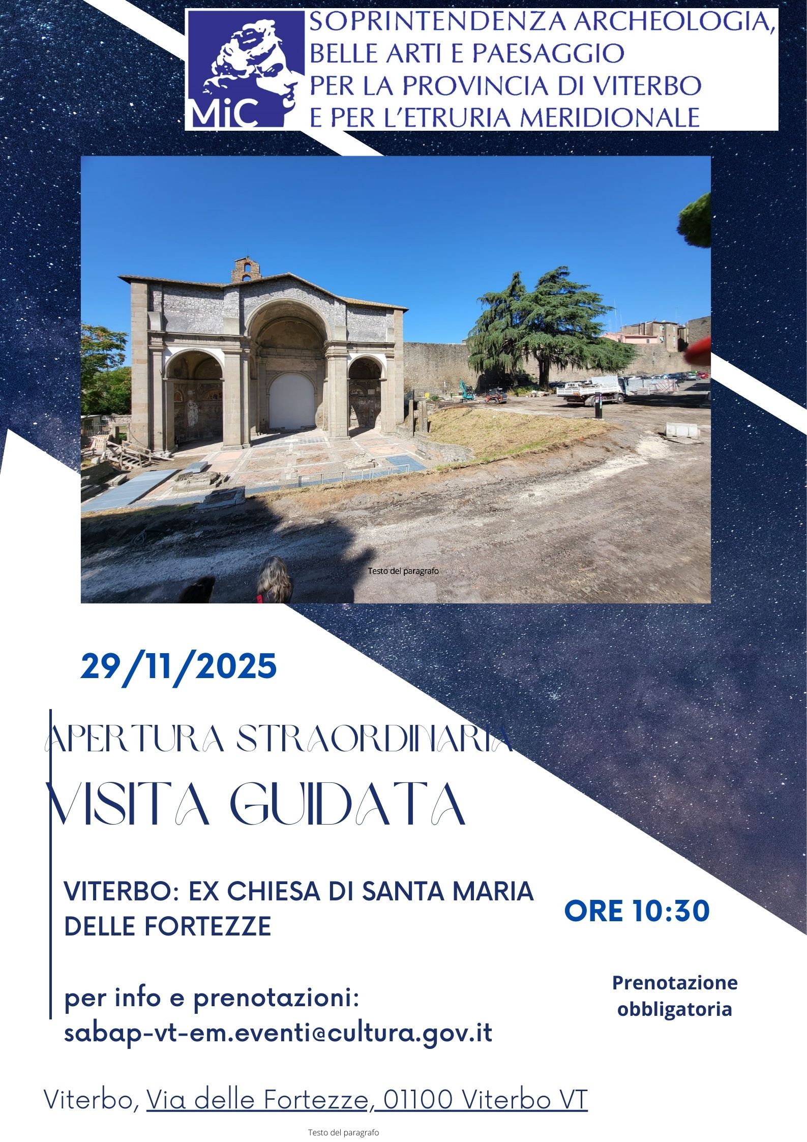 Viterbo: Apertura straordinaria ex chiesa di Santa Maria delle Fortezze